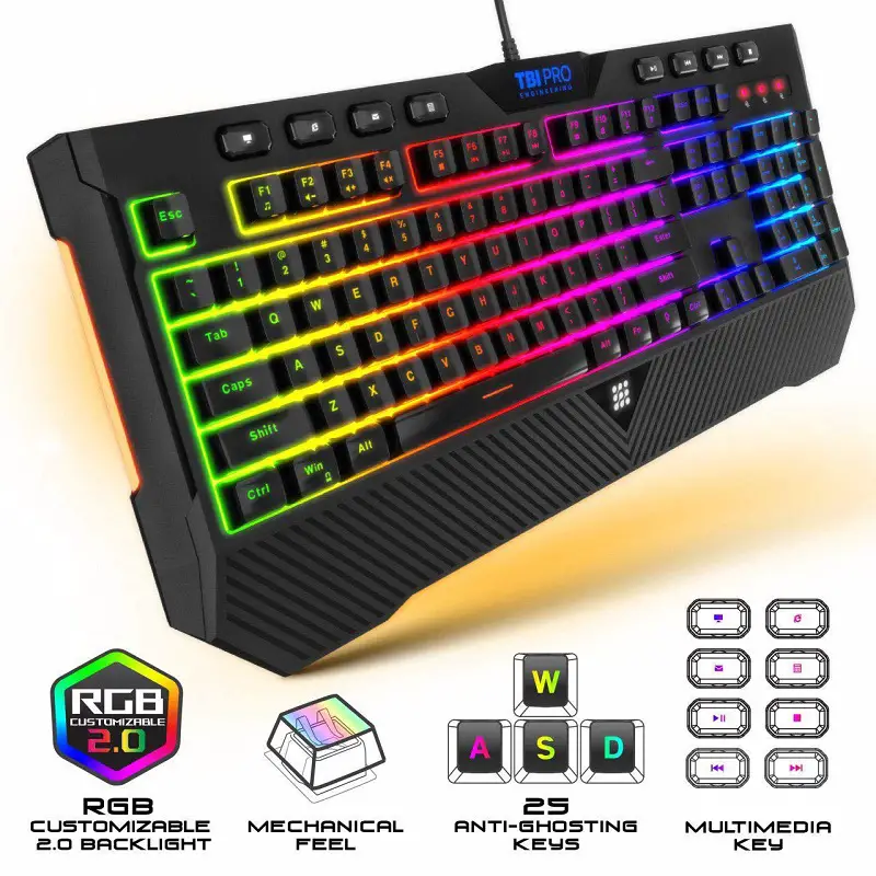 TBI Pro X64 Ultimate although is only a $40 keyboard, it brings some great and premium features you won’t find on a popular branded gaming keyboard under $50. The keyboard uses membrane keys which feel like mechanical in pressing and make a clicky noise. It provides anti-ghosting for up to 25 keys at the same time which is more than enough and 8 separate multimedia keys for functions like, play, pause, stop, next/forward and more.