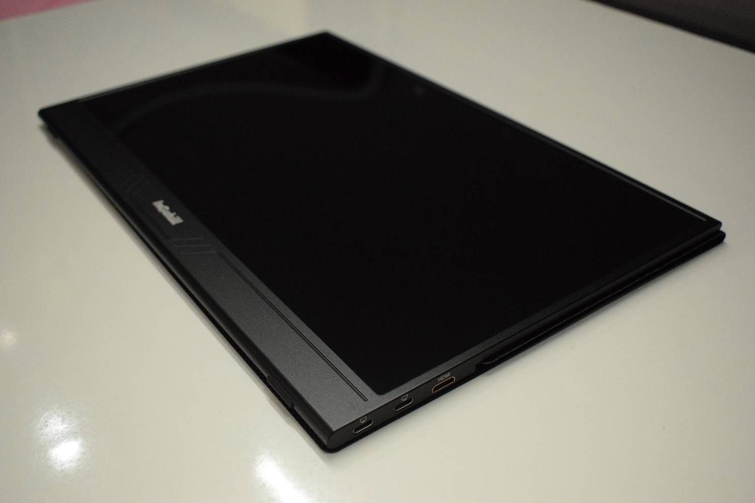 The monitor features dual Type-C ports and a mini HDMI port. Type C ports can either be used for powering up the device through a phone charger or a power bank. A normal 10-15W charger works perfectly, however, Intehill recommends using a more powerful one if your display is turning On and Off regularly.