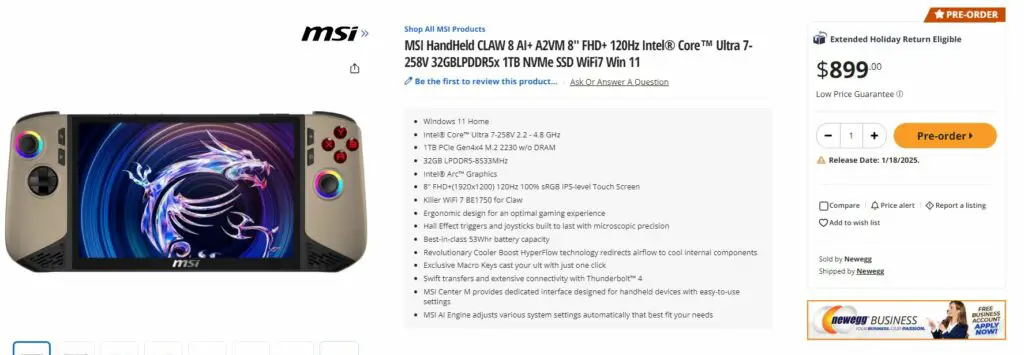 MSI Claw 8 and 7 AI+ were already listed on various retail stores such as Amazon and Newegg recently but aren’t yet available for shipping at the moment except that you can pre-order those. As far as Newegg is concerned, it has mentioned the date of shipping as 18th January 2025, which is three days later than MSI’s own store. Amazon didn’t reveal any such date and it would probably ship around the same time frame as Newegg.